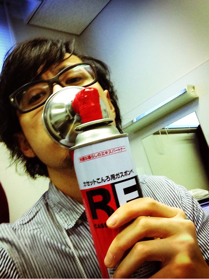 ガスボンベ吸ってる人みたい。