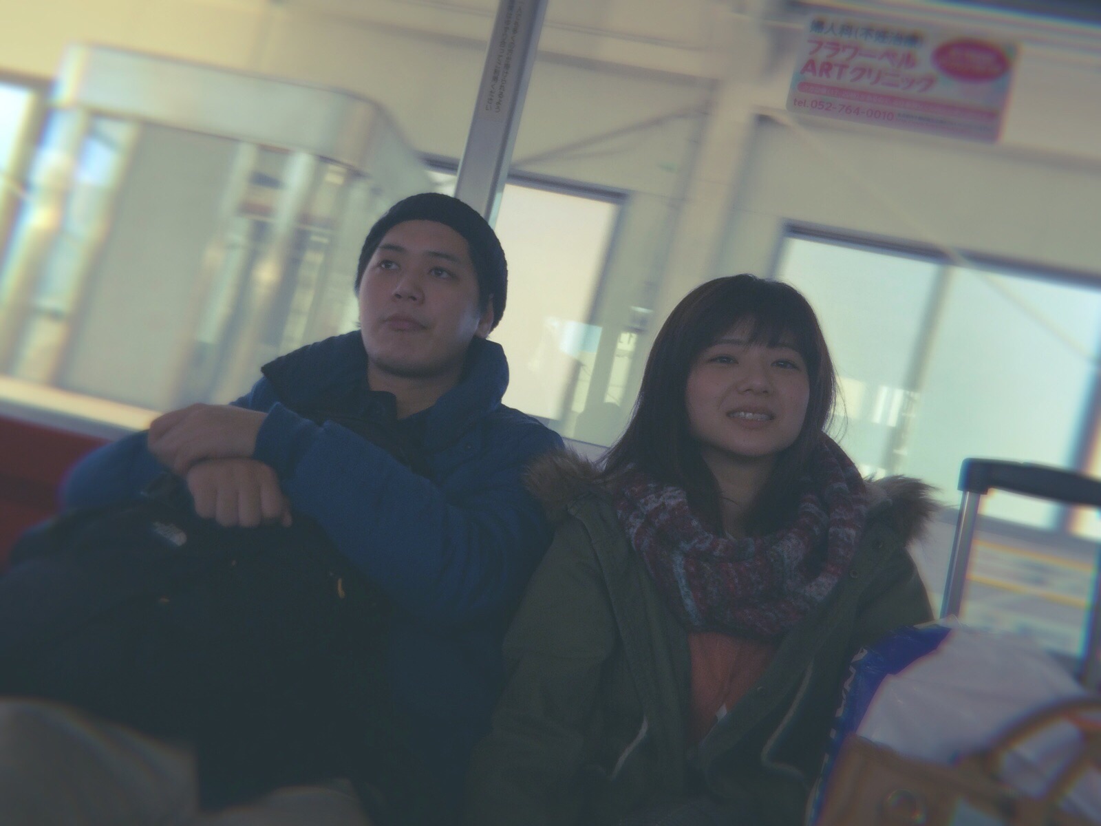 行く途中の地下鉄の赤谷と塚本。